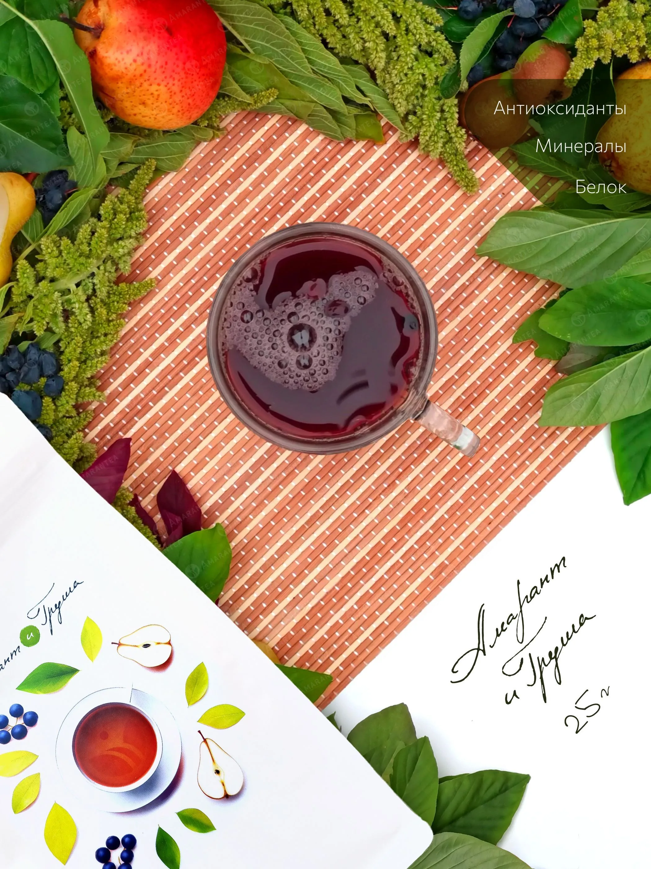 Амарант и Груша – зеленый амарантовый чай с грушей и барбарисом, 25 г, Amarantea