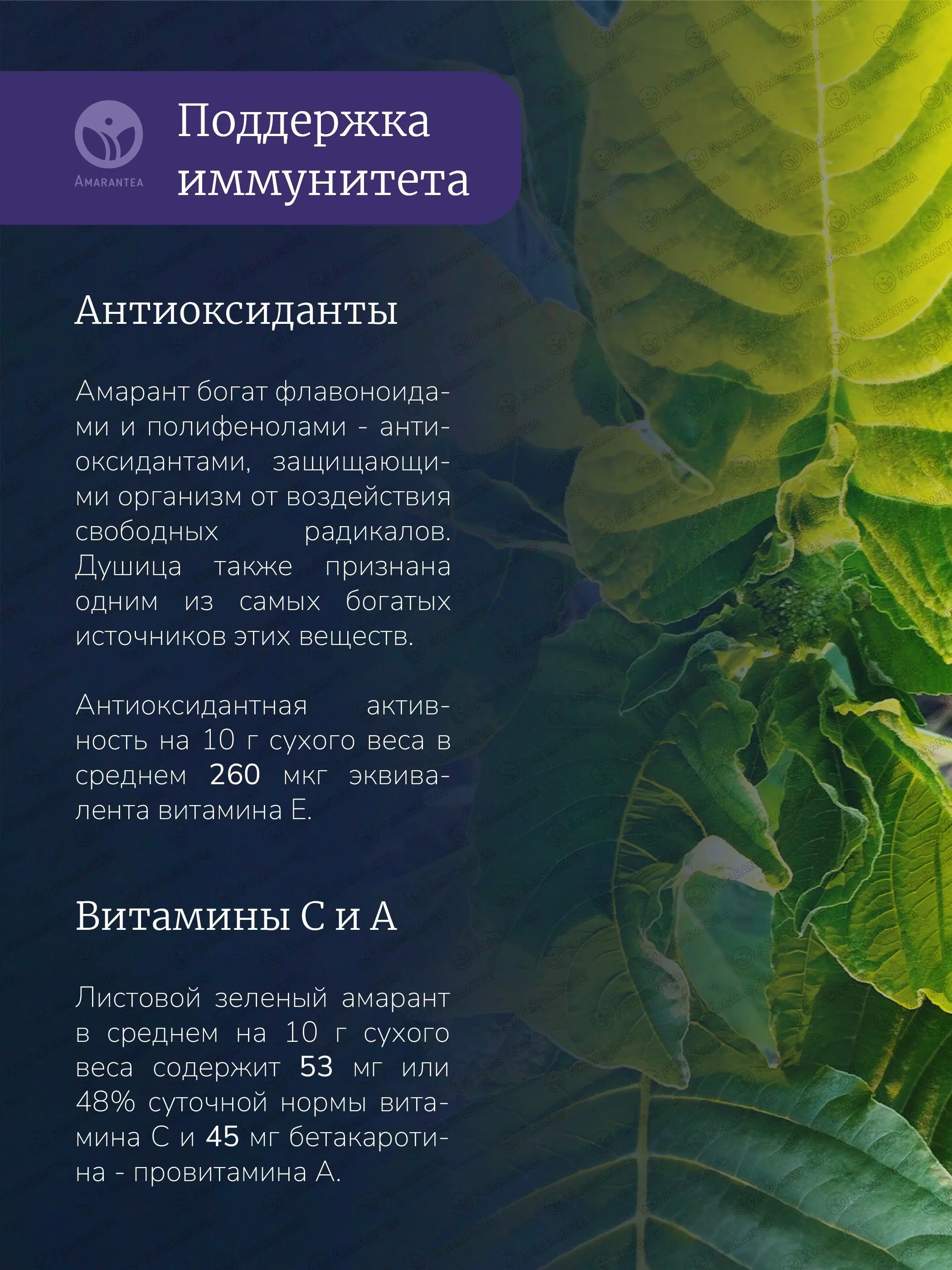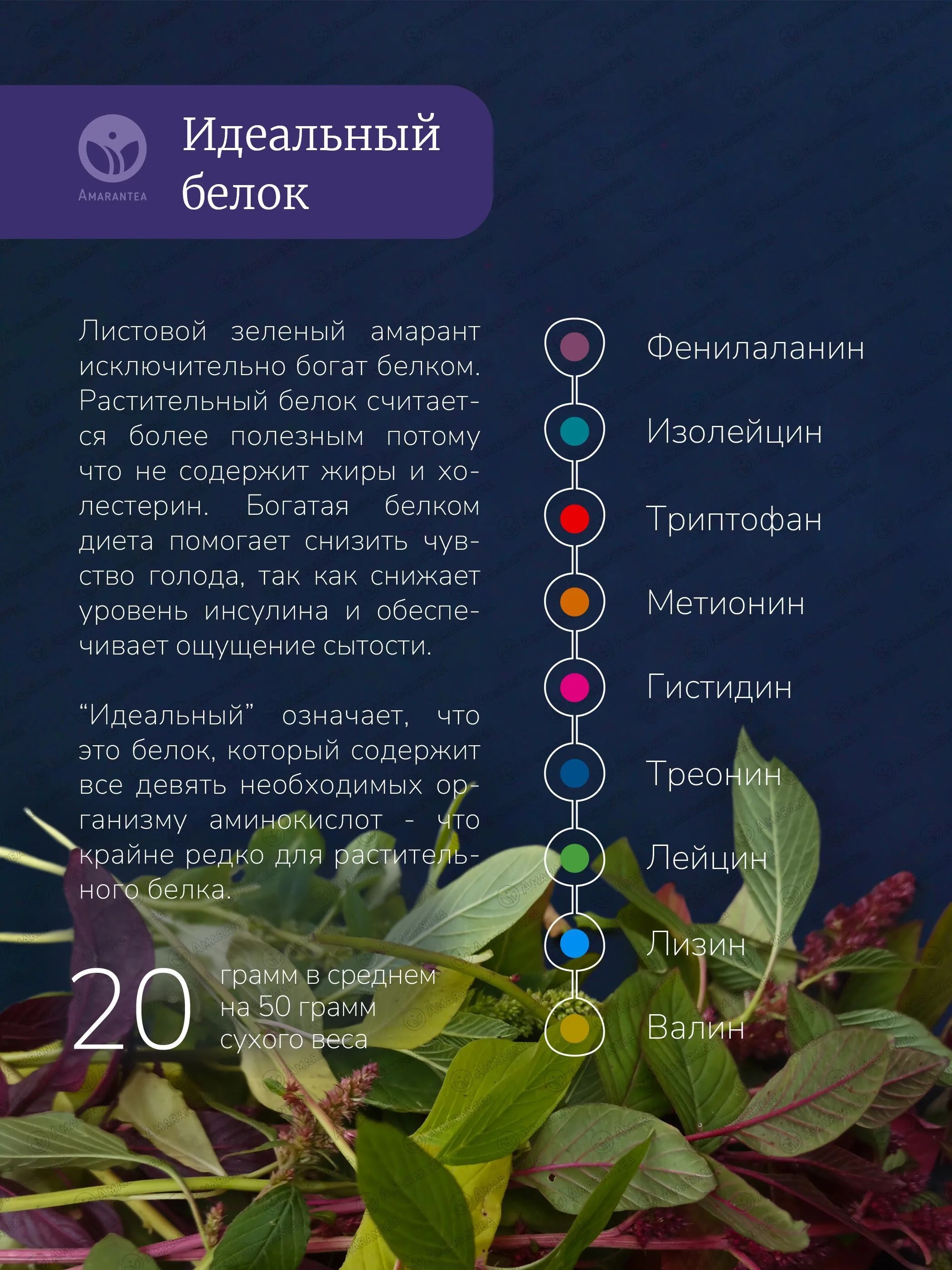 а зеленый амарант выращен и обработан по технологии Amarantea в России.