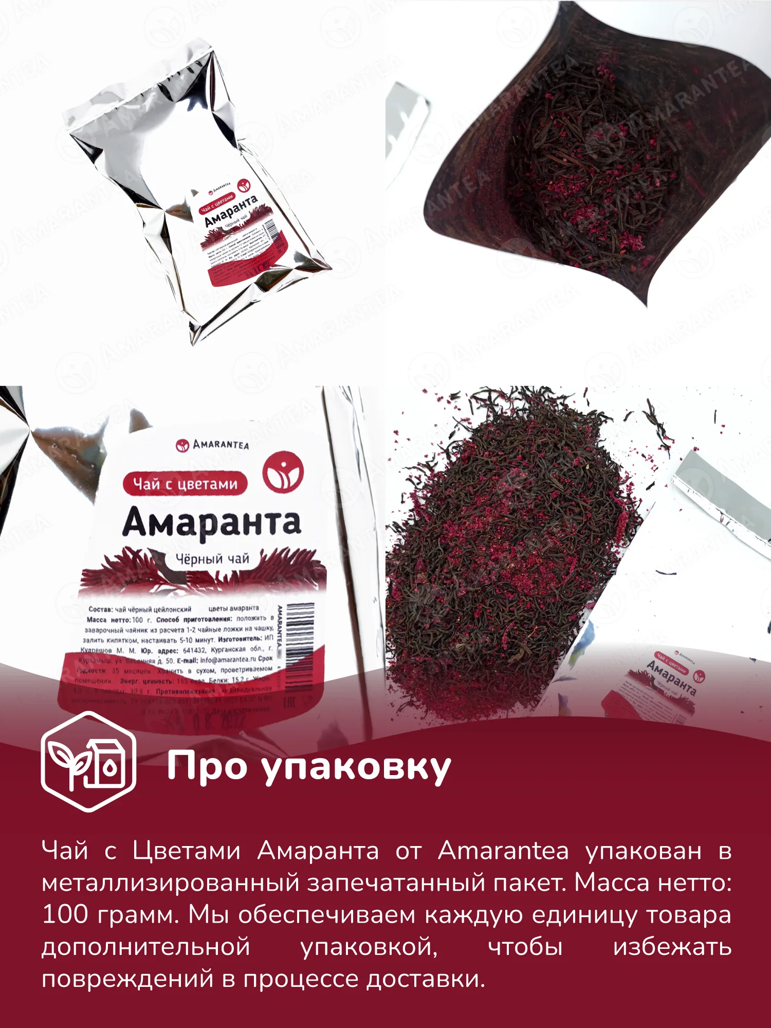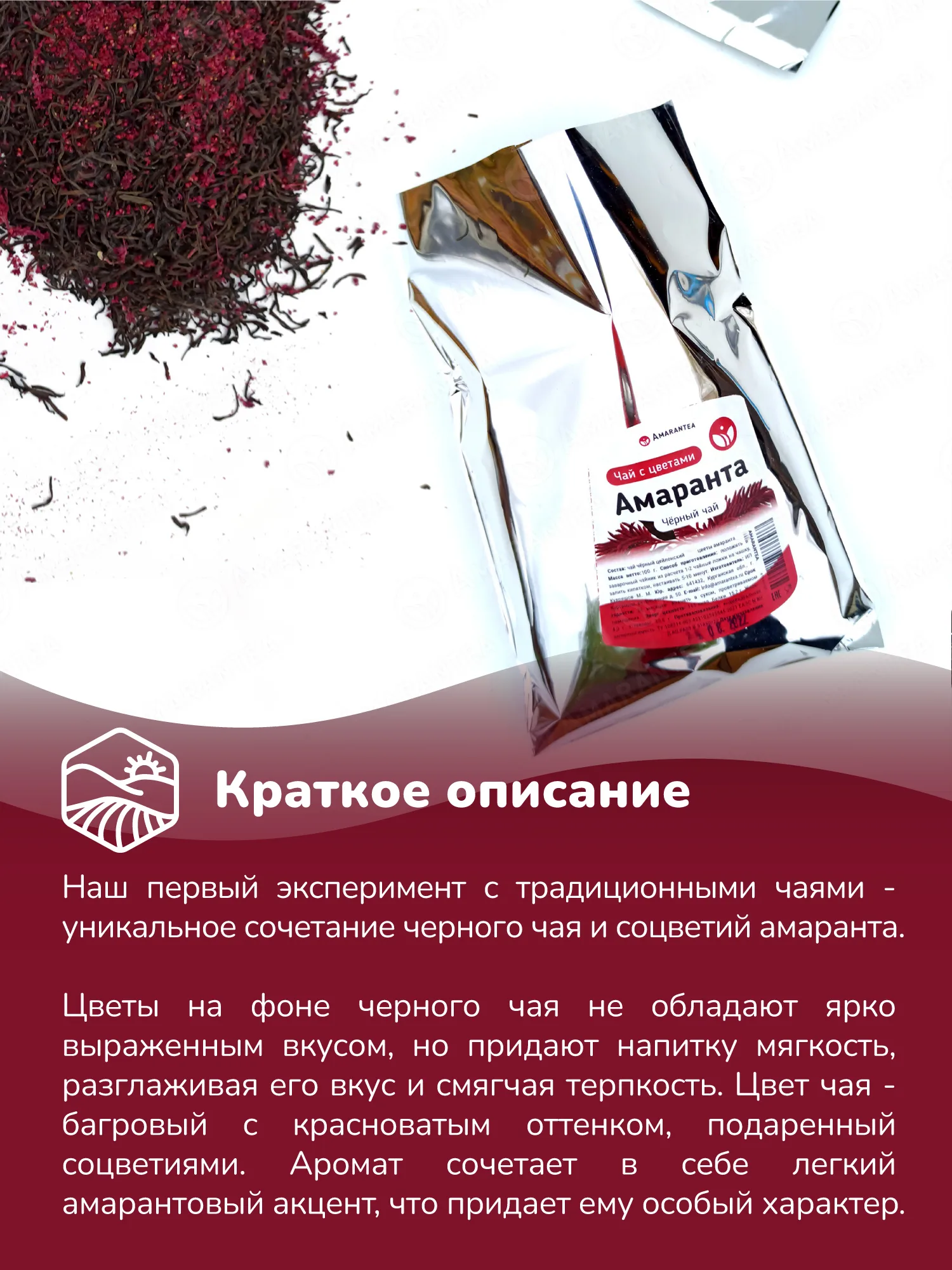 Чай черный “Чай с Цветами Амаранта” – цейлонский, байховый, 100 г, Amarantea