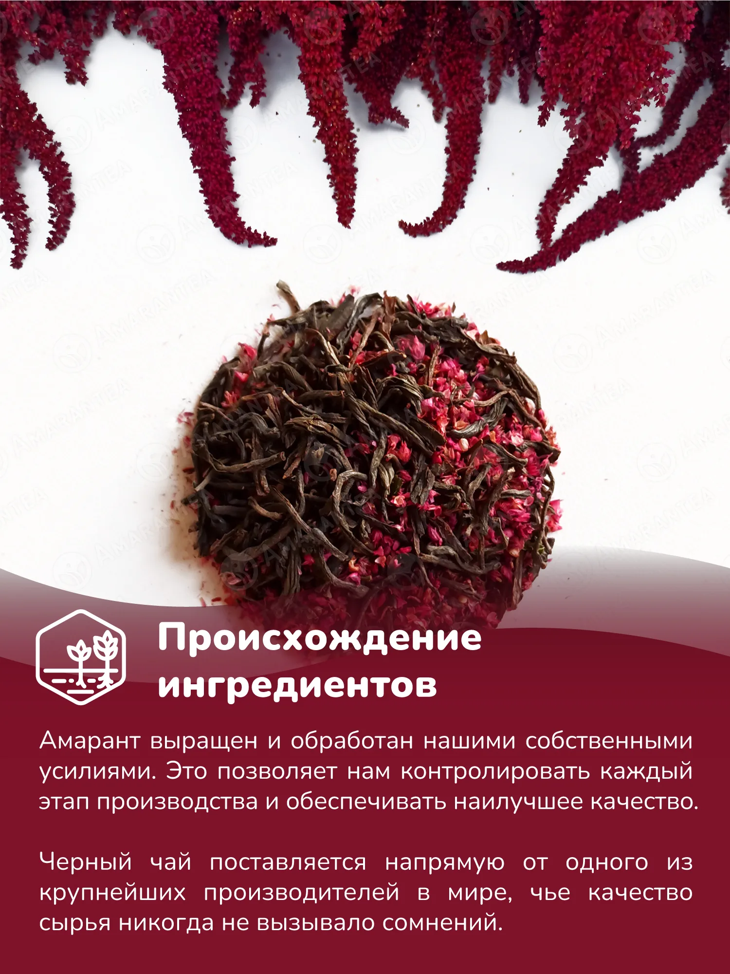 | Состав | Чай черный цейлонский байховый, цветы амаранта |