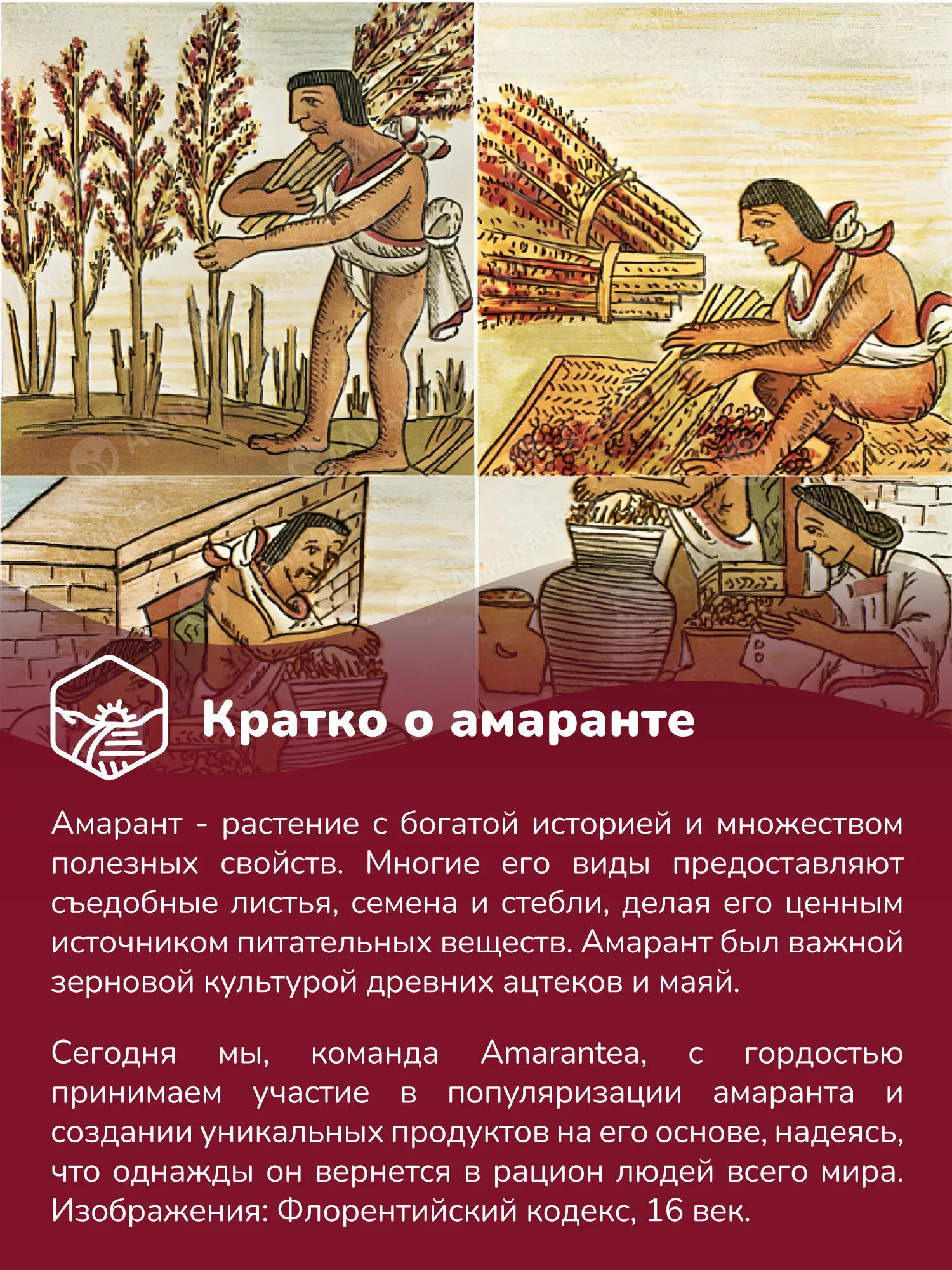 Зеленый иван-чай от Amarantea изготовлен из молодых листьев кипрея, собранных вдали от населенных пунктов. Напиток имеет янтарно-прозрачный оттенок, цветочный аромат с лёгкой терпкостью и горчинкой. Зеленый иван-чай богат витамином C, хлорофиллом и фенольными кислотами.